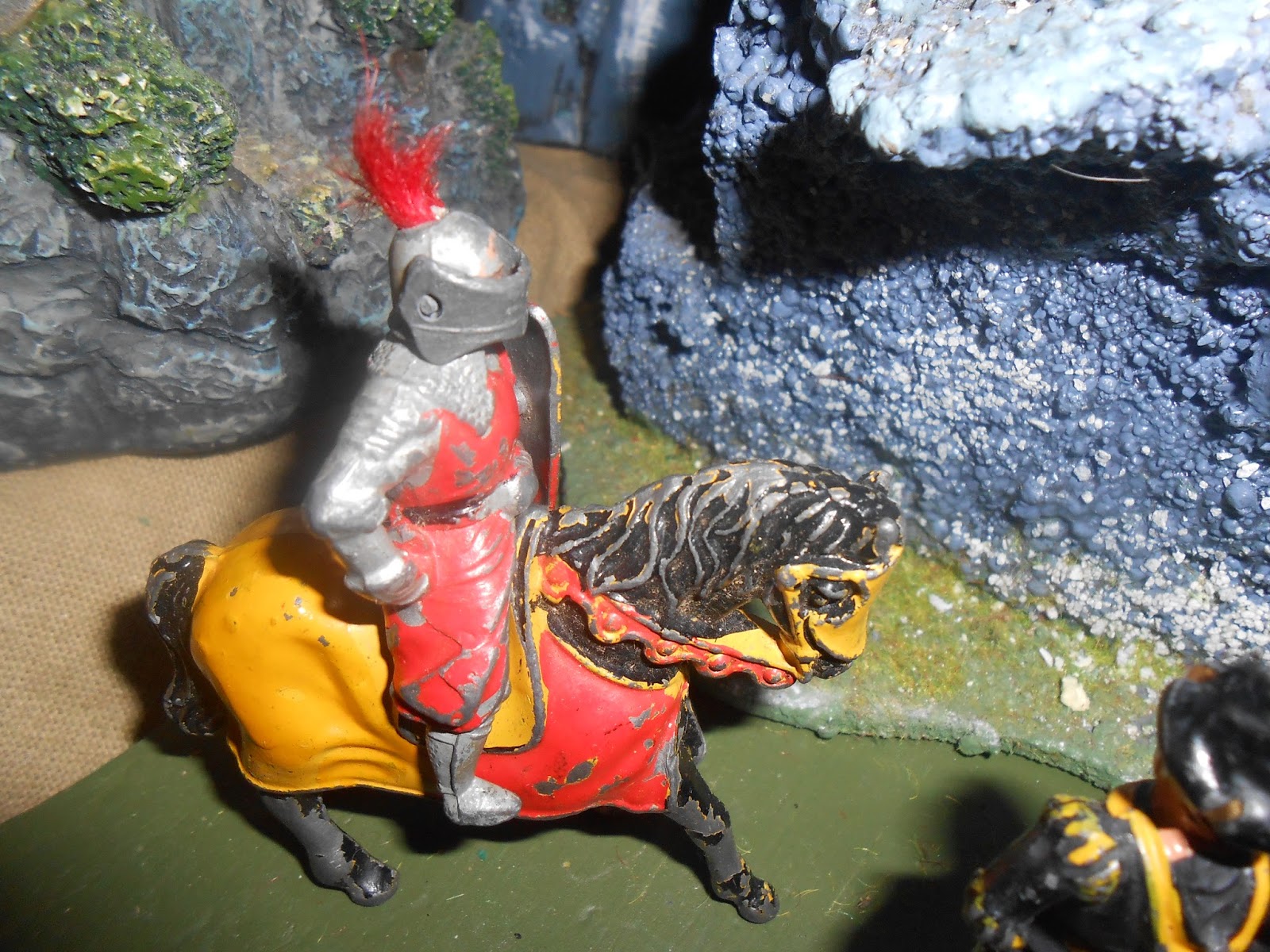 The mounted figures were $14 and the fouut figures around $6. I bought this nice looking Renaissance foot figure and the mounted knight which matches my Beerstein knights colours. i will glue him to a base and use him as a character figure. I'm not sure if i should touch up some missing paint on the horse but I'll give him a replacement plastic Timpo lance. The knight's plume may have been partly cut down.