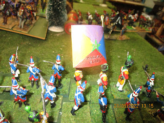 On Mat's left flank he sent a very strong force forward. These were plate armored and sustained heavy casualties from the Wizard's elite Munckin grenadiers and less so from the militias, and also from artillery fire. Zororaster cast spells to enable re-rolls of missed shots and to cast bad luck on the enemy. However, eventually the plate armored Winkies charged in and killed the cannoneers and drove off the Munchkin grenadiers. Slowly they were turning my right wing. Then the 'Cowardly lion' charged the witch, killing her although she wounded the lion. The lion then was killed by her men.