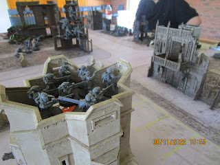 Today I observed the local wargaming club playing 40K. They were all getting back into playing 40K so the moves took a while. There was an unholy alliance on one side between Tyranids and Tau versus the other two players with Space Marines.